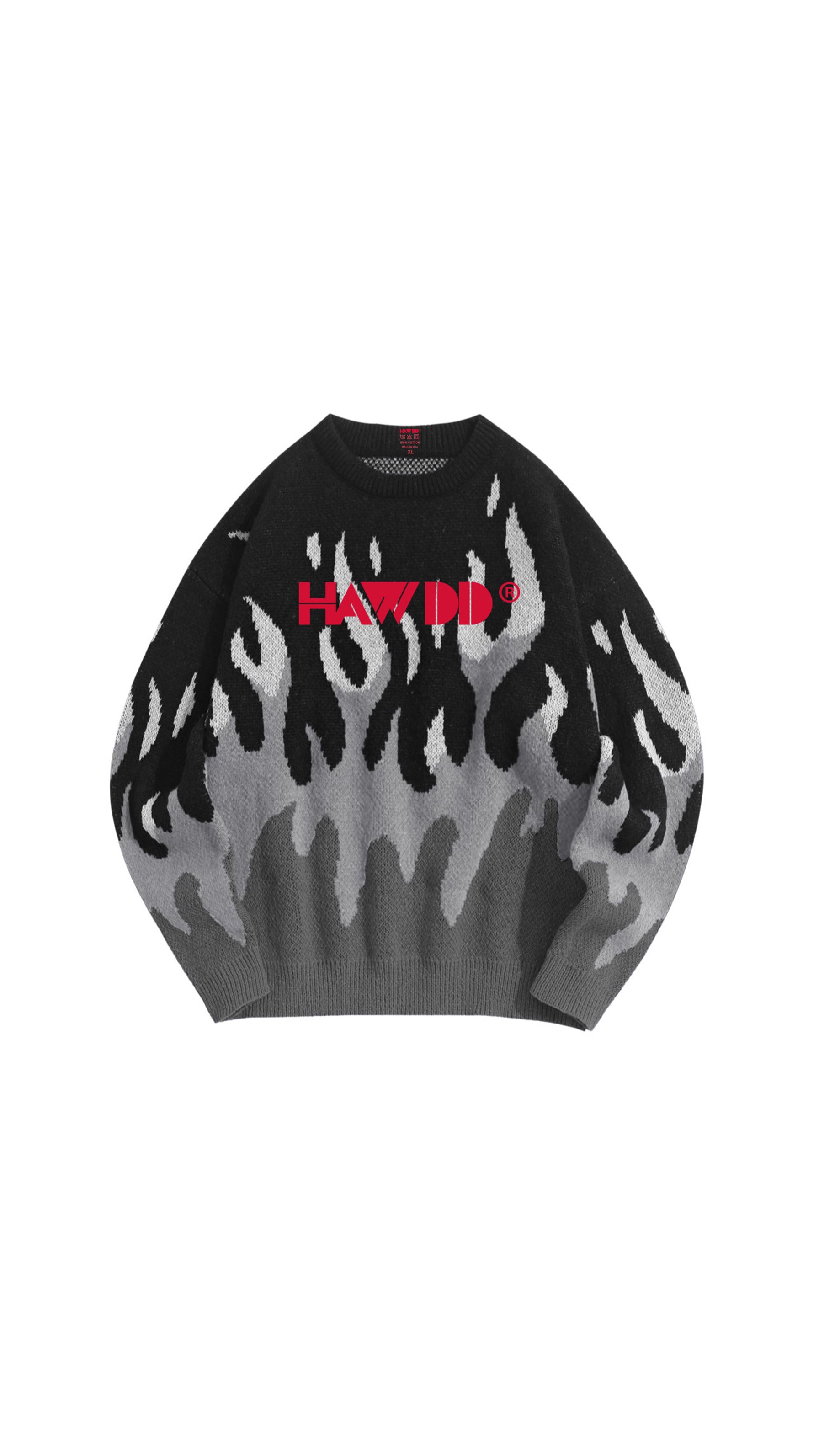 The HAWDD Flame Knit Sweater brings bold streetwear energy with its signature flame gradient design. Soft premium knit construction featuring the HAWDD® logo across the chest. Available in Pink, Red, and Grey colorways. Adult sizes S–2XL.